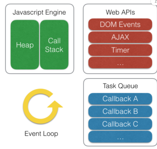 Web API는 브라우저에서 자체 지원하는 api이다. Web API는 DOM이벤트, AJAX, setTimeout등의 비동기 작업등을 수행할 수 있도록 api를 지원한다.