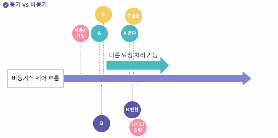 - 동기적 제어 흐름은 현재 실행 중인 코드가 종료되기 전까지 다음 줄의 코드를 실행하지 않는 것을 의미한다.