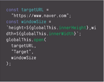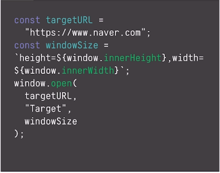- 현재 창의 정보를 얻거나, 창을 조작한다.(브라우저를 조작하는데 있어 유용한 객체)