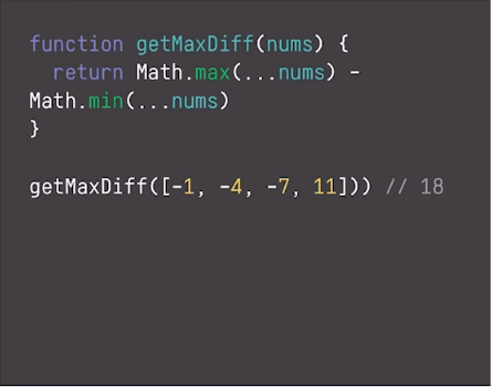 - getMaxDiff 함수는 배열의 최댓값, 최솟값으 차이를 계산