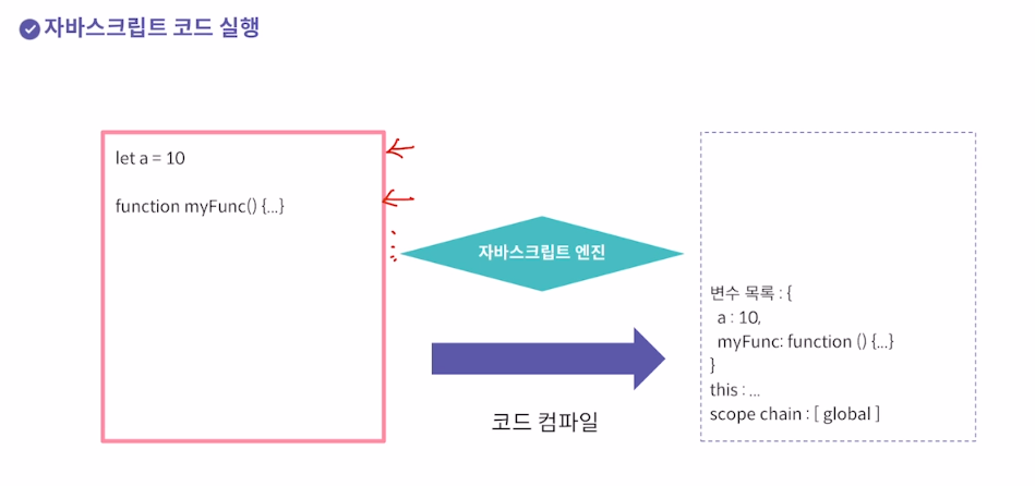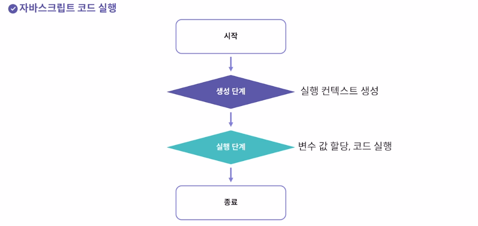- 자바스크립트 엔진은 변수에 값을 할당하는 구문을 만나면 실행 컨텍스트에 값을 저장한다.