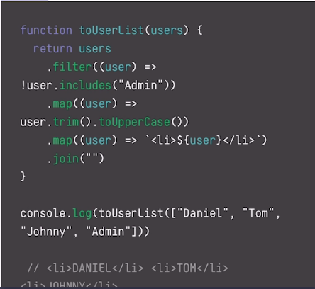 - toUserList()는 이름의 배열을 받아 리스트 태그 목록의 문자열을 계산한다.