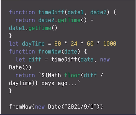 - fromNow는 주어진 시간이 현재로부터 며칠이나 흘렀는지를 계산한다.