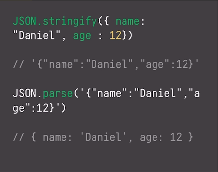 - JSON.parse()는 주어진 JSON 문자열을 자바스크립트에 맞는 결과 객체로 만든다.