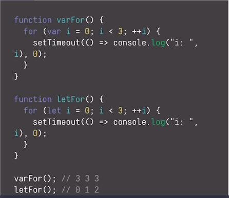 - letFor에서 i는 for 블럭 안에 존재하는 변수이다.