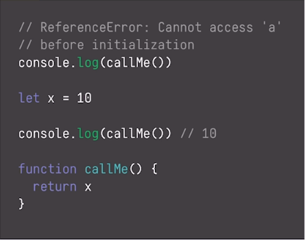 - 이 경계를 Temporal Dead Zone(TDZ)라 한다