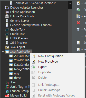 다음으로는 왼쪽 리스트 중에 JavaApplication을 우클릭해서 New Configuration을 해주자