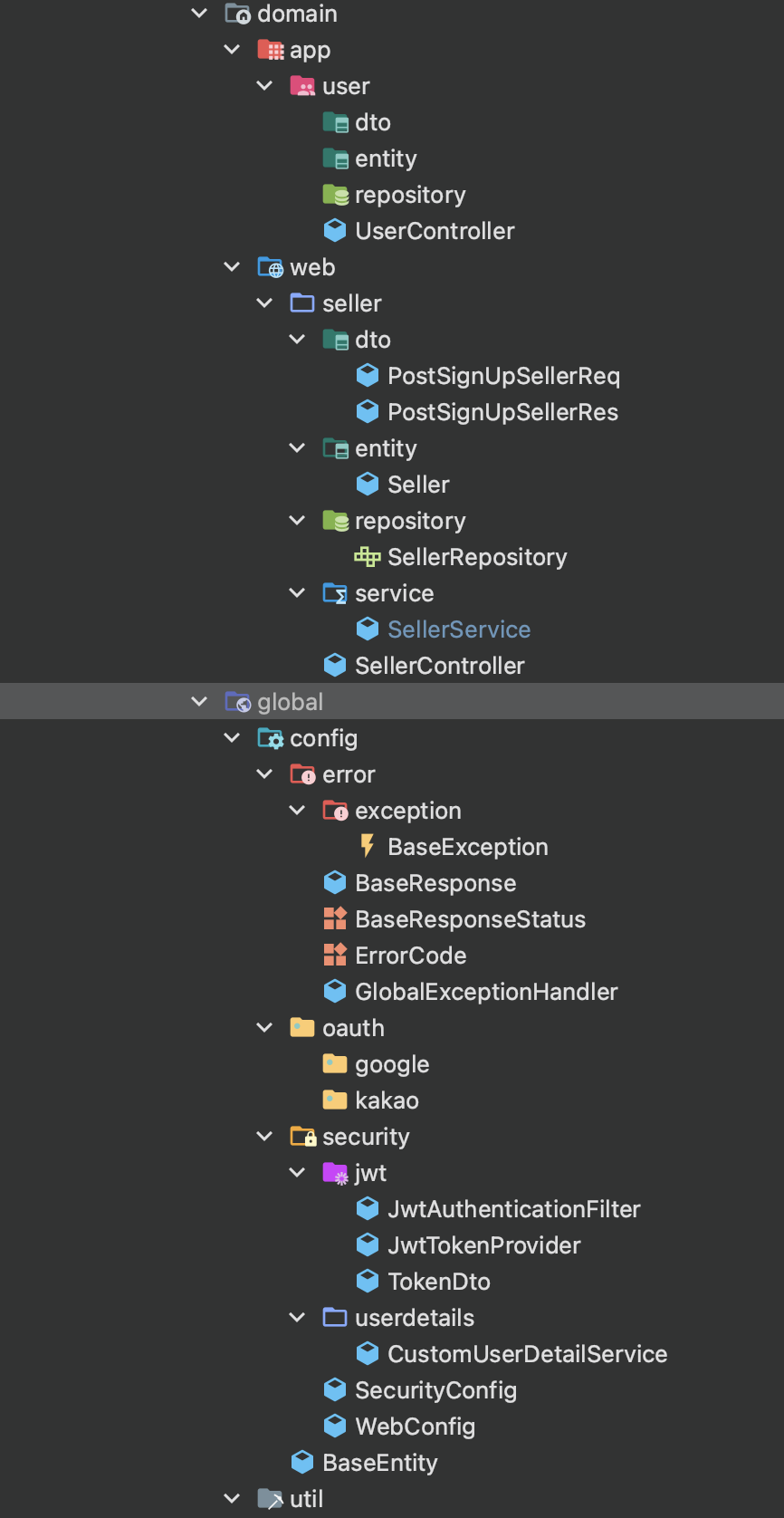 global/config/error 패키지, global/config/BaseEntity 클래스를 사용 중이다. domain/web/seller 도메인을 사용 중이다.package com.umc.jaetteoli.domain.web.seller.dto;