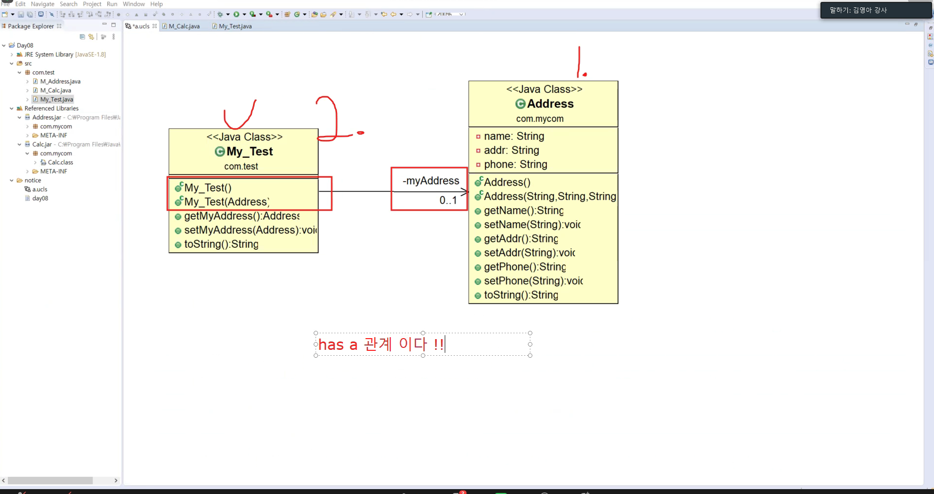 My_Test는 Address클래스를 HAS-A관계로 관리하는 클래스.