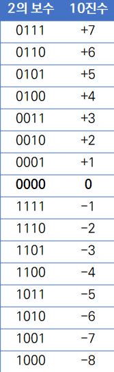 1000에서 110을 뺀 값인 010이 바로 110의 2의 보수 표현이 된다.