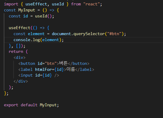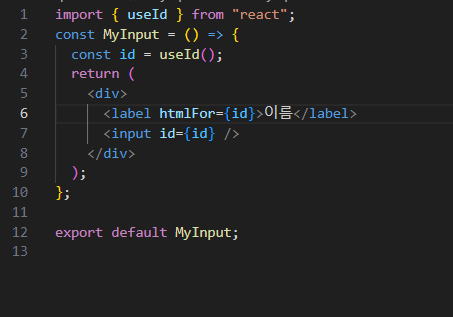 useId로 만든 아이디는 인풋 같은 폼 요소에서 접근성에 관련된 속성을 제공할 때 정말 유용하게 사용된다.