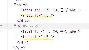 두 개의 input에 각자 고유한 아이디가 생성된 걸 확인할 수 있다.