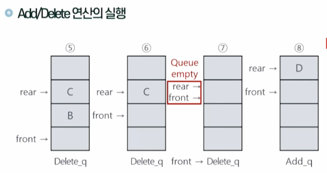 // queue(++rear) → rear에 1 증가시킨 후, 해당 위치에 새로운 원소 삽입