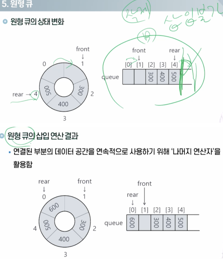 : 배열로 구현한 큐의 경우 큐의 원소의 개수가 n-1이 아니더라도 큐가 full이 될 수 있음