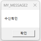 MessageBox(hwnd, TEXT("수신확인"), TEXT("MY_MESSAGE2"), MB_OK);