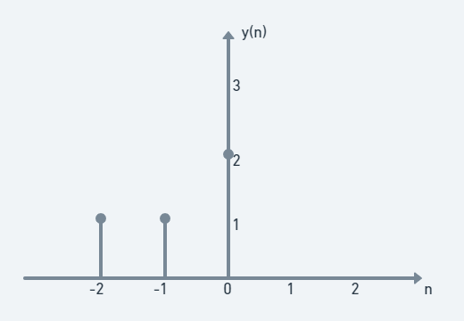 y(−n) = [1, 1, 2]가 된다. 이제 이를 x(n)과 차례로 겹쳐가며 sum을 구해보자.