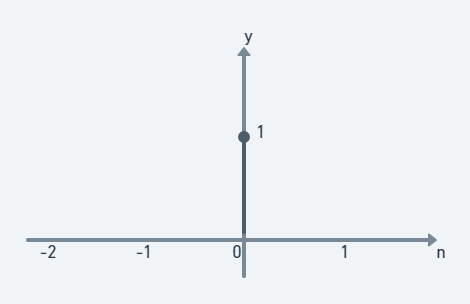 Discrete time에서 dirac delta 함수의 모습, n=0일때 1이고 0이 아닌 구간의 값은 모두 0이다.