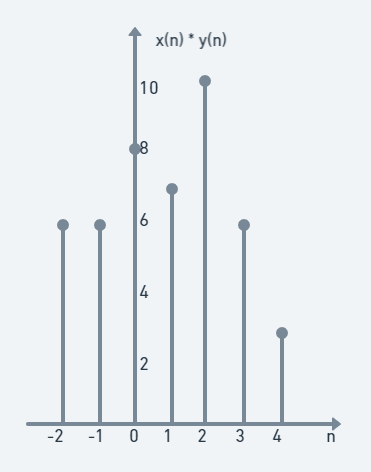 이를 종합해보면 x(n)∗y(n) = [6, 6, 8, 7, 10, 6, 3]인 것을 확인할 수 있다.