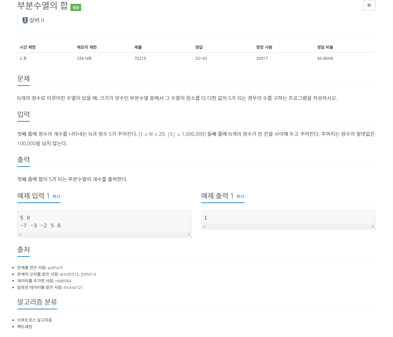 이 문제는 부분 수열의 합이 S와 같아질 때의 횟수를 구하는 문제로, 백트래킹 알고리즘을 활용하여 풀 수 있다.