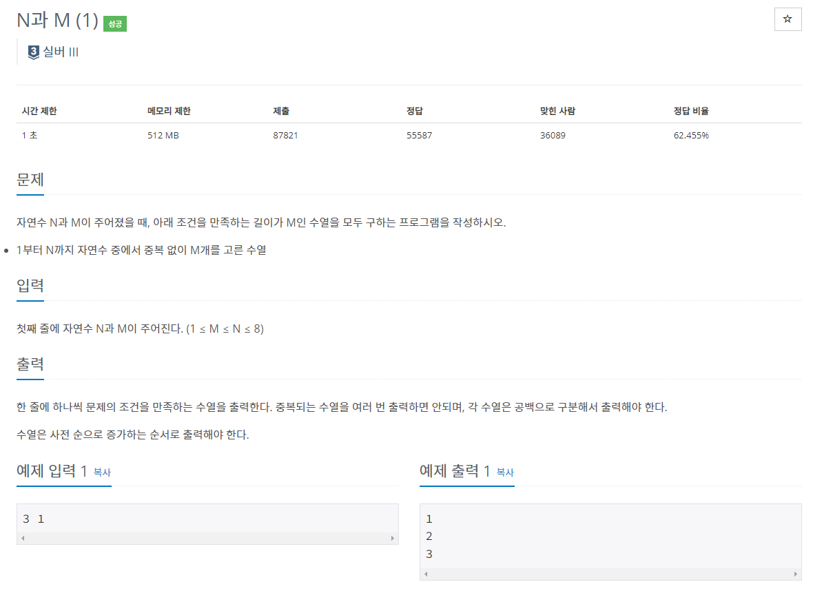 def backtracking(n,m,selected,visited): #selected : 현재까지 선택된 수열 나타내는 리스트