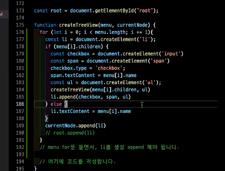 function createTreeView(menu, currentNode) { //// obejct랑 현재 있는 node
