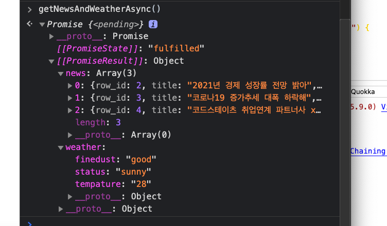 // console.log(data) = [ news의 반환값, weather의 반환값 ]