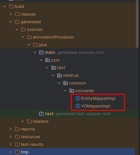 MapStruct 는 컴파일 시점에 Mapper 인터페이스를 기반으로 아래와 같이 Impl 클래스를 자동으로 구현해준다.