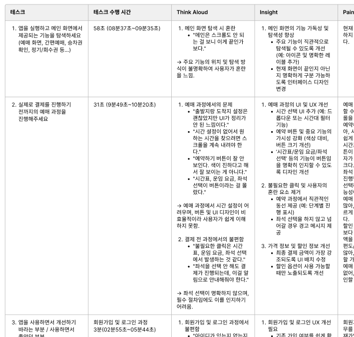 정리를 한 이후 Think Alound와 Insight, Pain Point를 종합한 후 하루를 마무리함