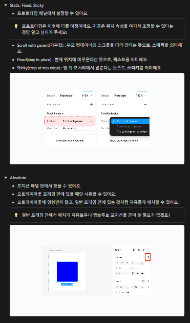 피그마에서 설정할 수 있는 포지션의 종류