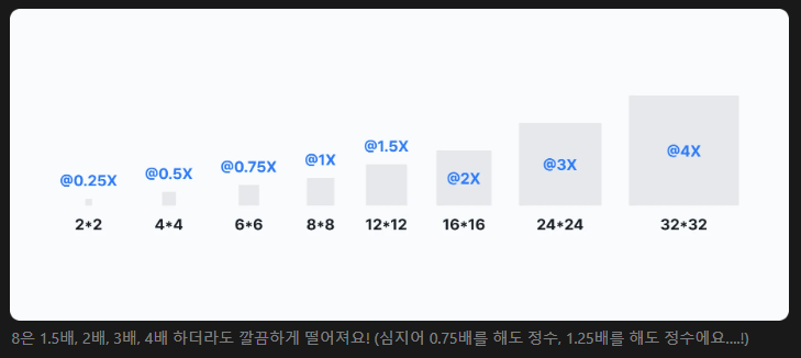 최근에는 디바이스의 해상도가 워낙 선명하고 좋아져서, 디자인도 더 세밀하고 복잡하게 만들기 위해 8대신 4배수나 2배수까지도 사용하는 경우도 많음