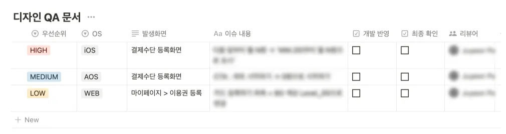데스크별로 개선이 필요한 부분 리스트업