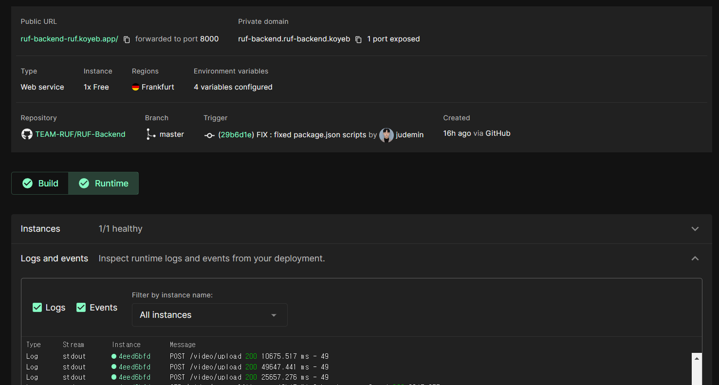 무료 deploy service인 koyeb을 사용하여 백엔드 배포