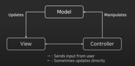 Model, View, Controller로 애플리케이션을 구성할 때 그 구성요소를 세 가지 역할로 구분