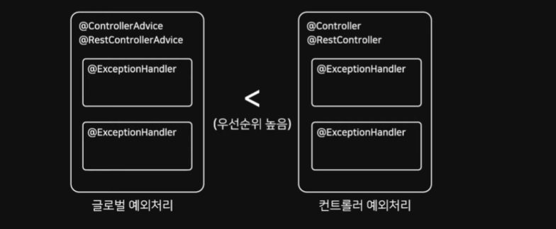전역설정 (@ControllerAdvice)보다 지역설정 (Controller)로 정의한 Handler가 우선순위 가짐