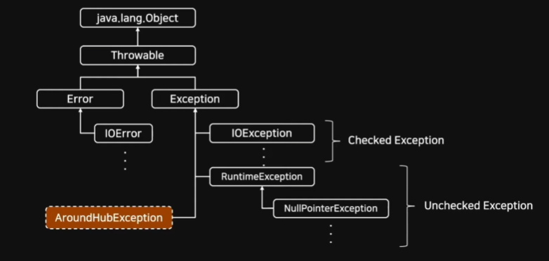 @AroundHubException을 통해 새로운 예외처리 클래스를 만들 수 있음