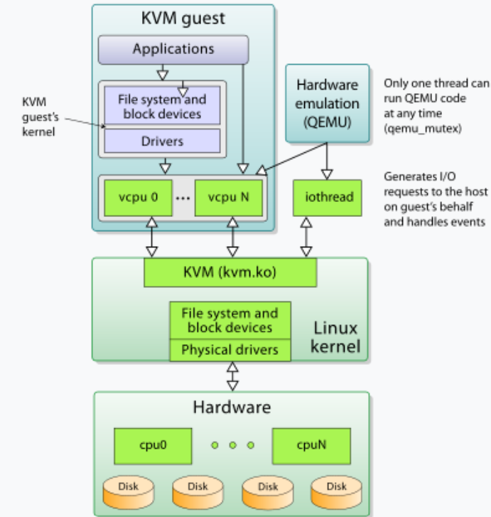 하드웨어 가상화 기술(Intel VT-x 또는 AMD-V)을 사용하여 가상화를 구현