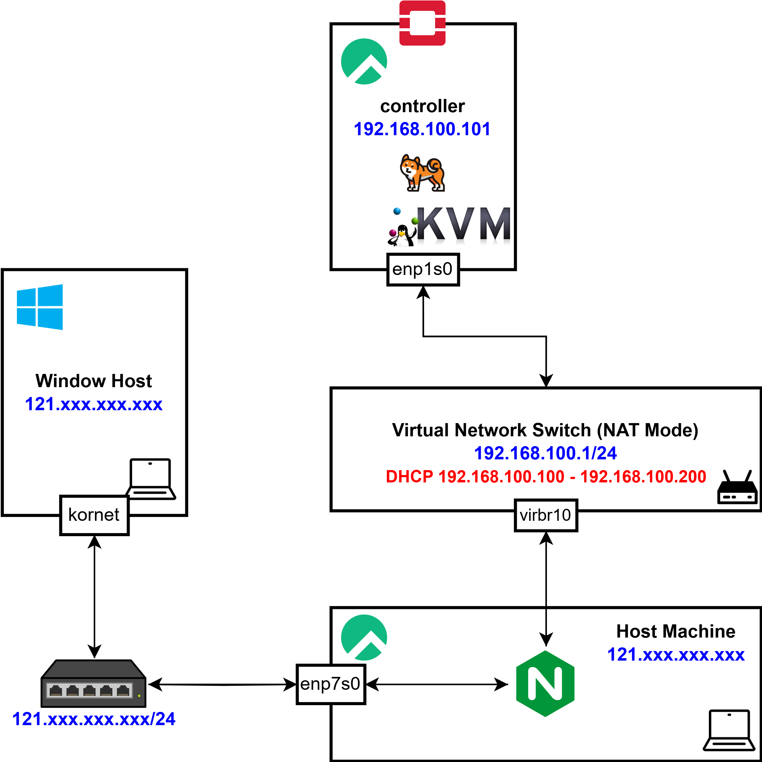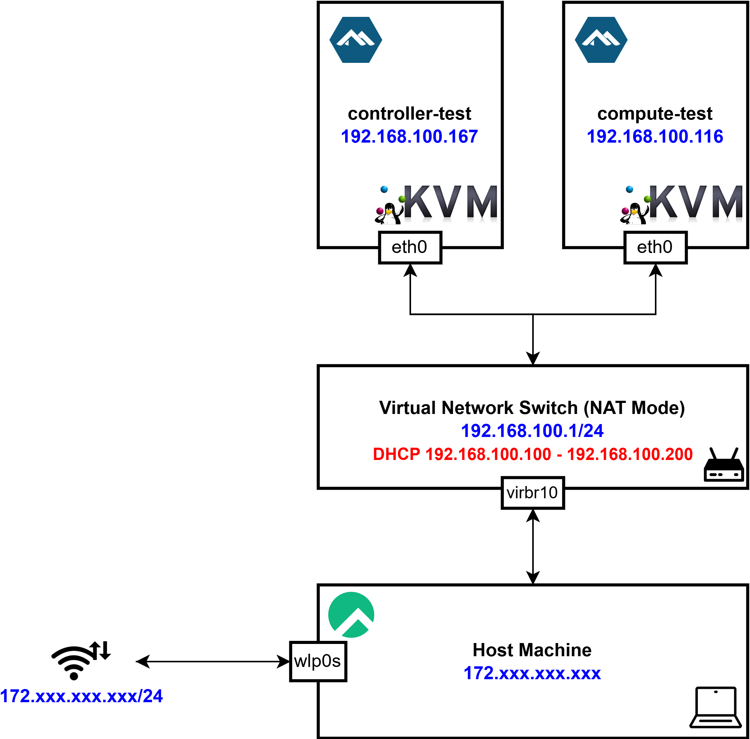 Wi-Fi 인터페이스를 직접 bridge로 활용하는 것은 현재 불가능하기 때문에 Host 머신에서 NAT 기반 가상 네트워크를 생성하여 각 Node들이 외부와도 통신하고, Node끼리의 통신 또한 가능하도록 구성하고자 한다.