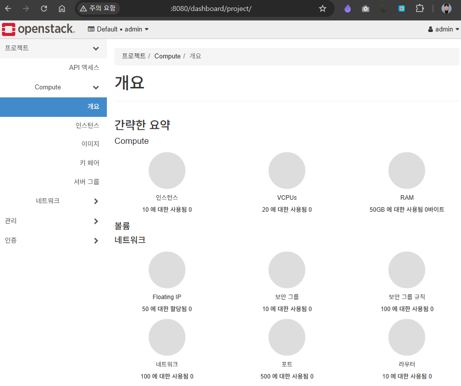 Horizon Dashboard를 통해 이를 확인할 수도 있다.