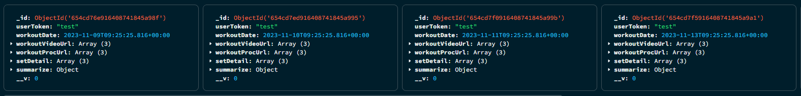 위와 같이 요청한 startOfDay와 endOfDay에 있는 모든 workoudData 반환