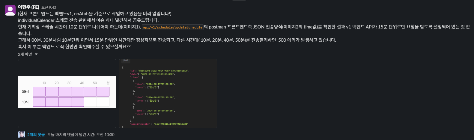 이러한 내용을 Slack을 통해 팀원들에게 공유하였다.