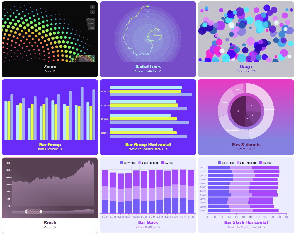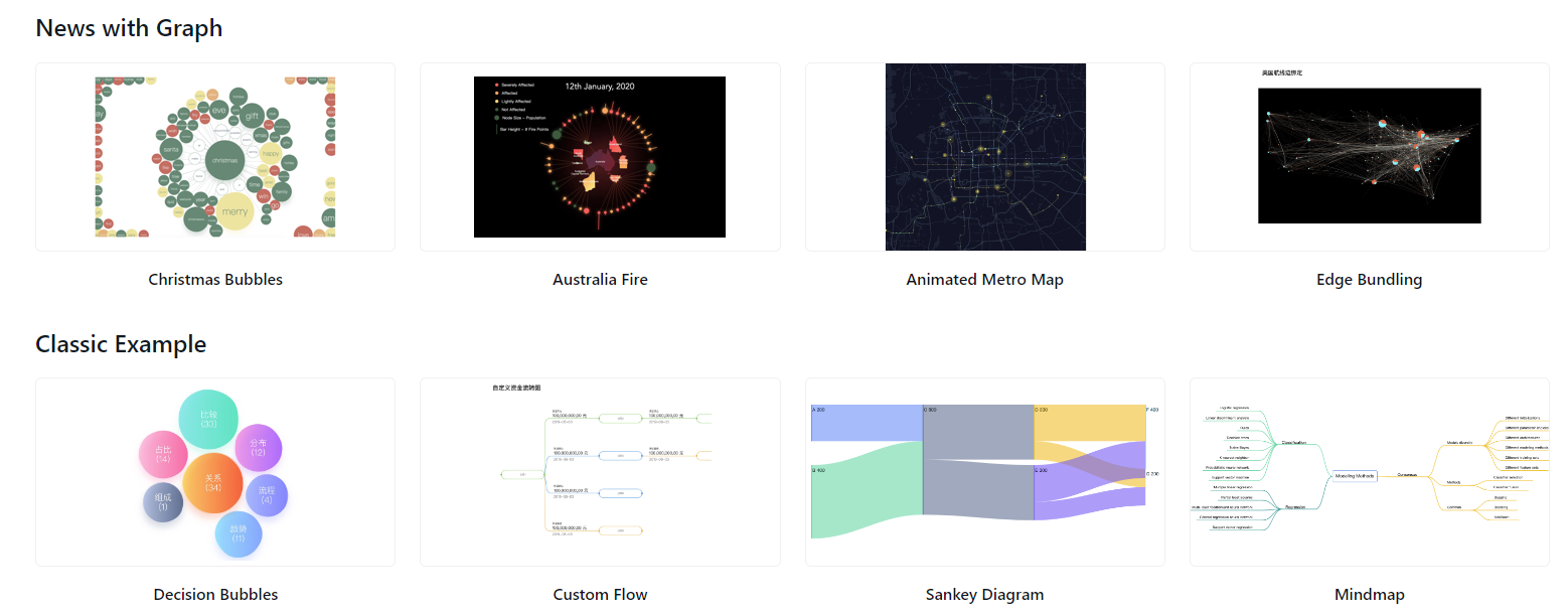 - 데이터 시각화를 강조하고 상호 작용성이 필요, 다양한 상황에 활용 -> Antv