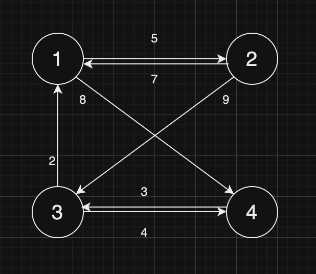 X→Y 가는 최소 비용 vs X→1 가는 비용 + 1→X 가는 비용2번을 마지막 노드까지 반복한다.