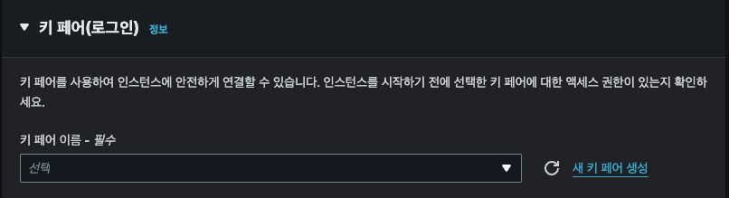 기존 키가 없다면 새 키페어 생성 클릭
