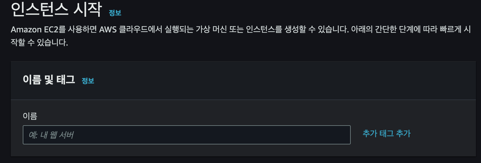 우측 상단에 인스턴스 시작을 클릭한다.