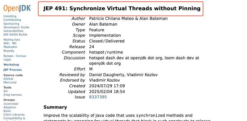 그래서 '오~ 또 뭐가 업데이트됐으려나'하고 신규 기능을 살펴보던 중, JDK24에 포함된 JEP 491을 알게 되었다.