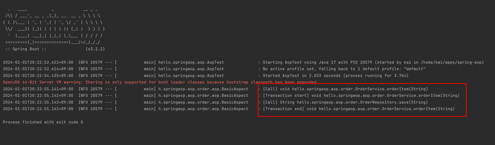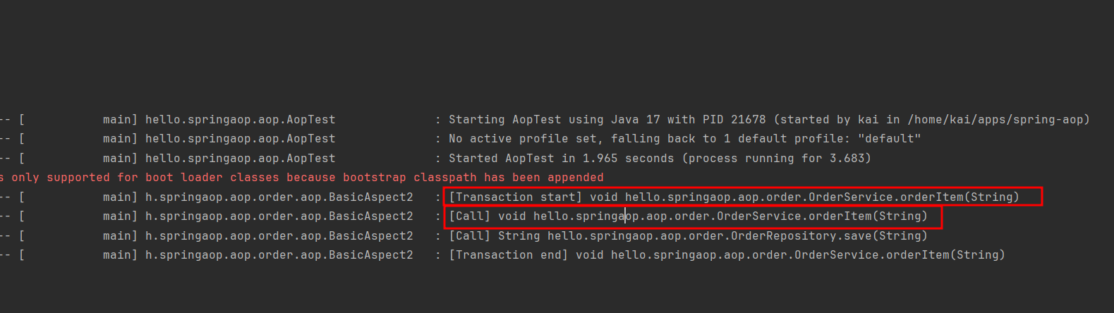 4번에서 작성한 테스트 코드를 다시 실행해서 프록시의 적용 순서가 보장되었는지 확인해보자.