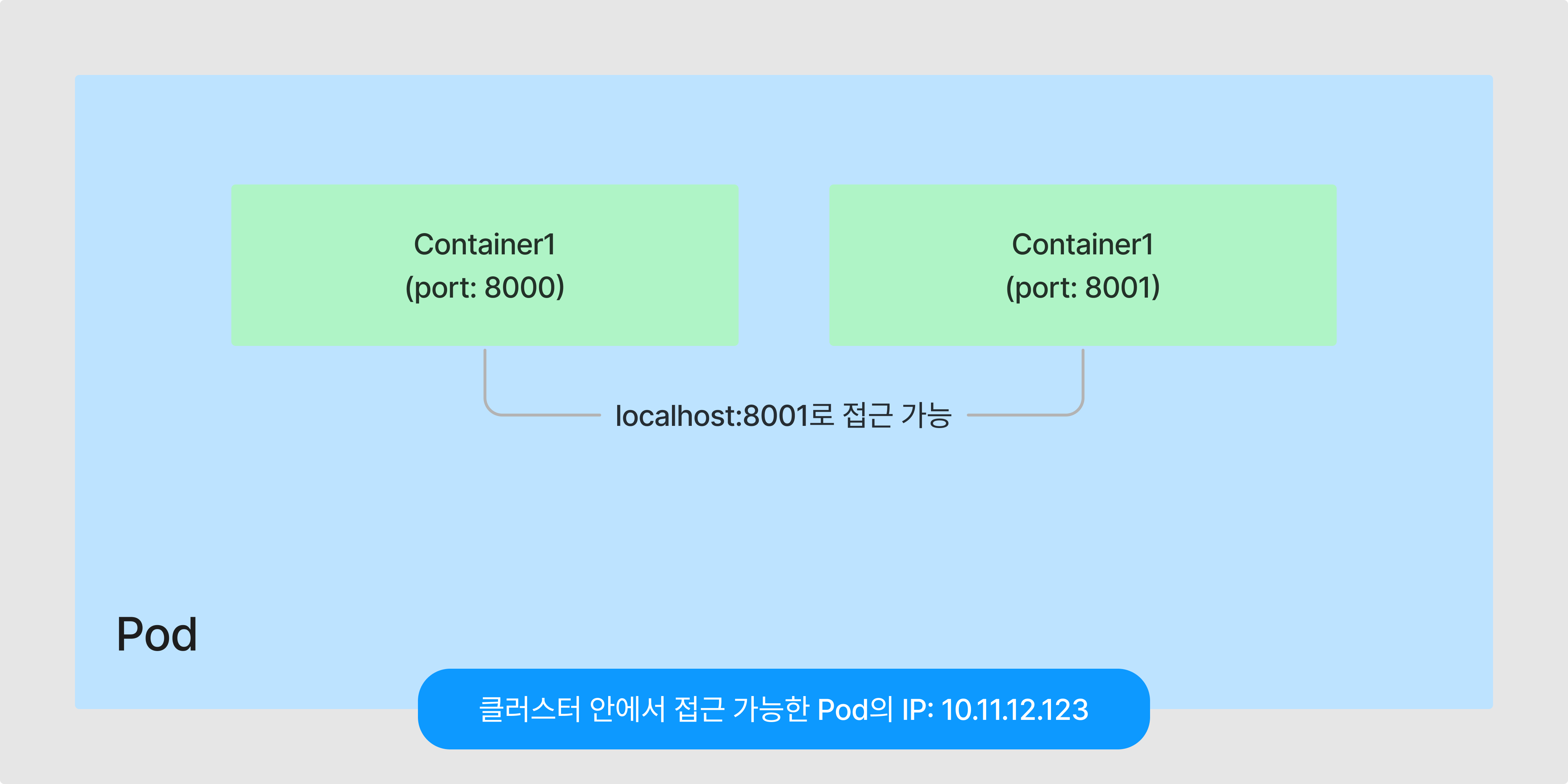 이 때, 각 컨테이너에는 포트를 지정할수 있고, 컨테이너끼리는 localhost로 서로에게 접근할 수 있다.