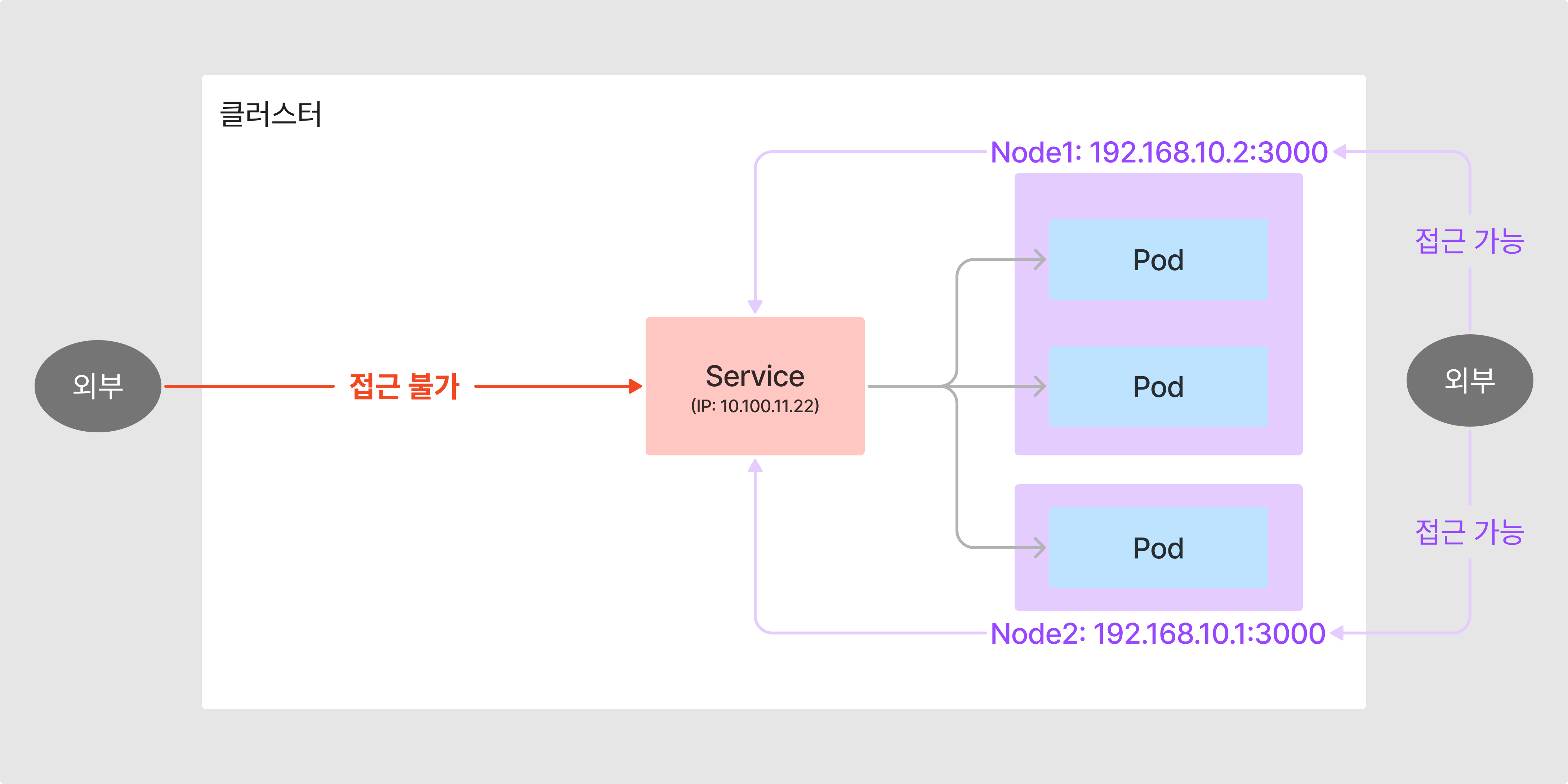 NodePort는 ClusterIp를 확장하여, 외부에서 접근 가능한 Node의 IP를 사용하여, 외부에서 애플리케이션에 접근할 수 있도록 했다고 볼 수 있겠다.