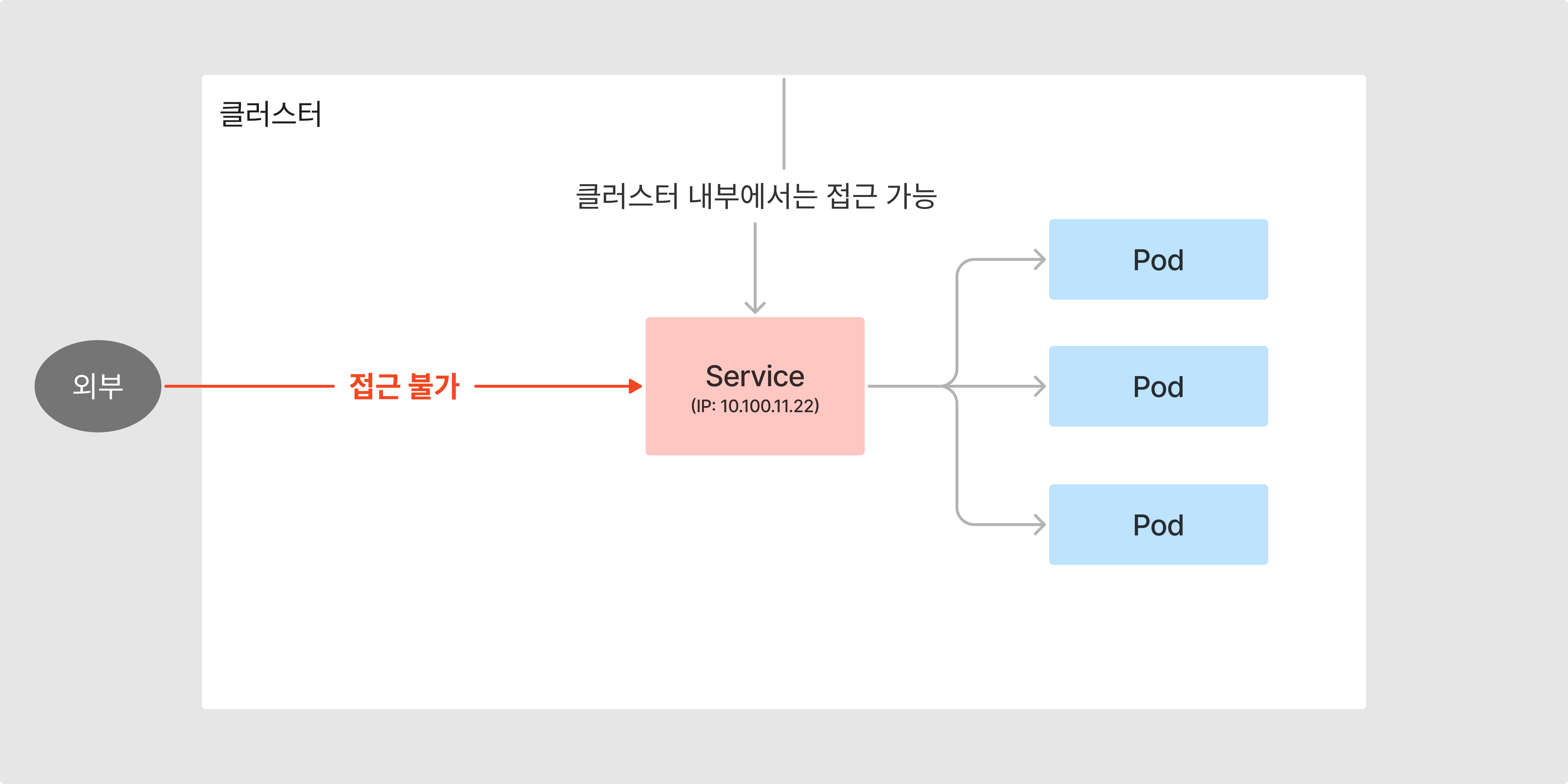 ClusterIp 방식은 클러스터에서 접근 가능한 고정적인 IP를 Service에 부여해서, 접근할 수 있게 하고, 들어오는 트래픽은 Service에 연결된 Pod에 분산해준다.