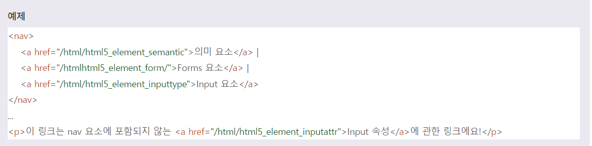 - HTML 문서 사이를 탐색할 수 있는 링크(link)의 집합을 정의합니다.